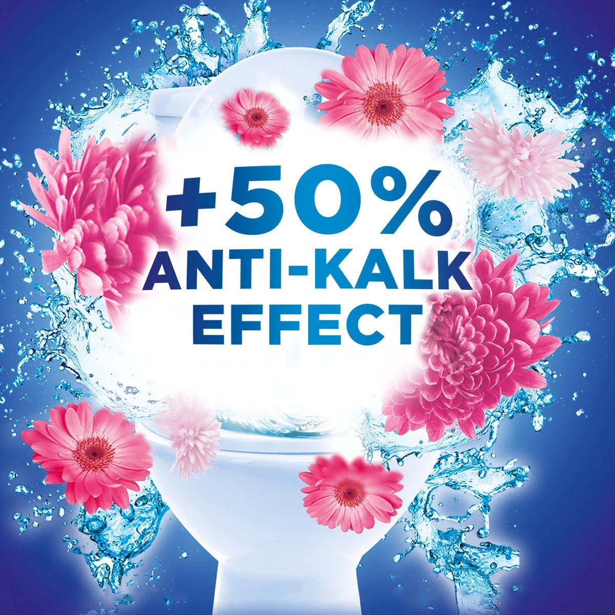 Dankzij de anti-kalk formule wordt kalkaanslag in het toilet voorkomen.